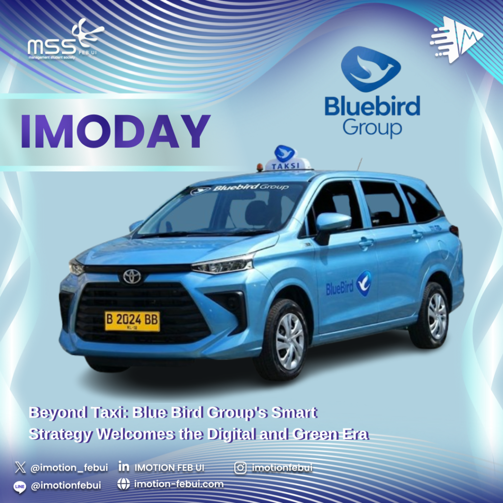 Blue Bird Group not only relies on its reputation as Indonesia’s leading taxi fleet but continues to update its strategies to remain relevant in the modern era. Recently, Bluebird has set a target to add up to 1,000 electric vehicles (EVs) by 2025 as part of its transformation towards environmentally friendly mobility (Fauzan & Salim, 2025).